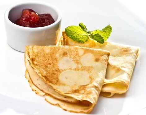 Блинчики, масло слив., джем фруктовый или сгущеное молоко. Энерг. ценность на 100 гр - 241 Ккал