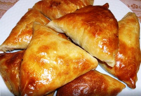 Духовая самса из сдобного теста с начинкой из курицы и репчатого лука
