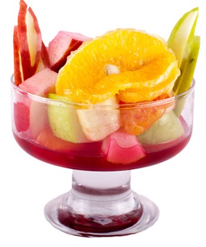 Апельсин, банан, яблоко, сливки, ликер "Амаретто". Энерг. ценность на 100 гр - 118 Ккал