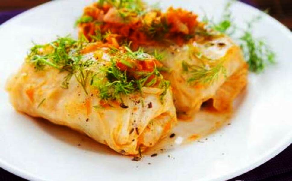 Голубцы натуральные из свинины с добавлением курицы, подаются с томатным соусом