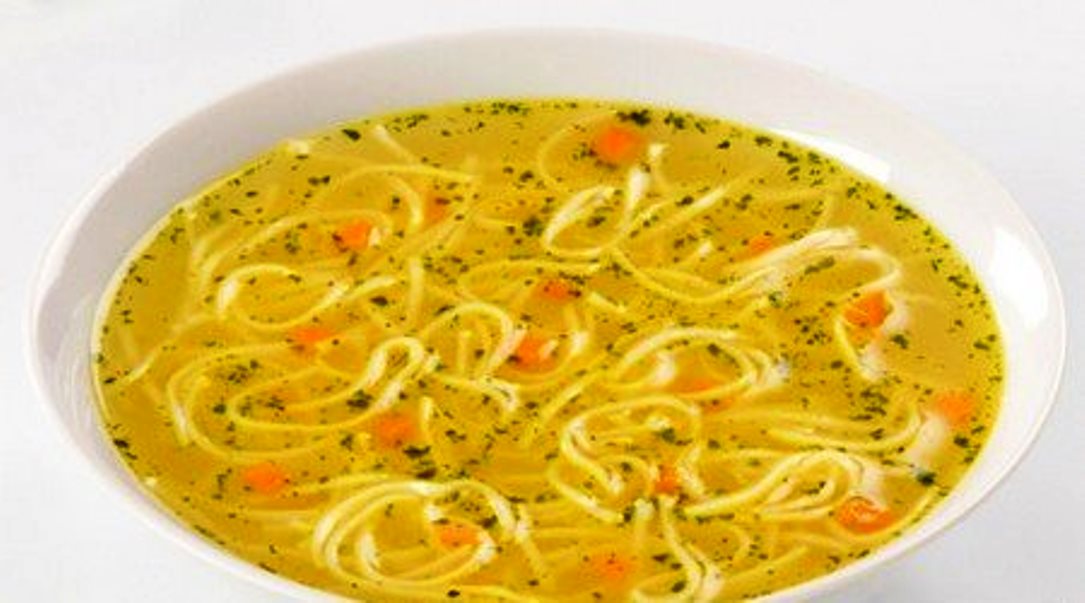 Куриный бульон, грибы, лук, морковь, лапша домашняя, специи