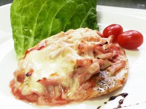 Куриное филе, ветчина, майонез, моцарелла. Энерг.ценность на 100 гр - 217 Ккал