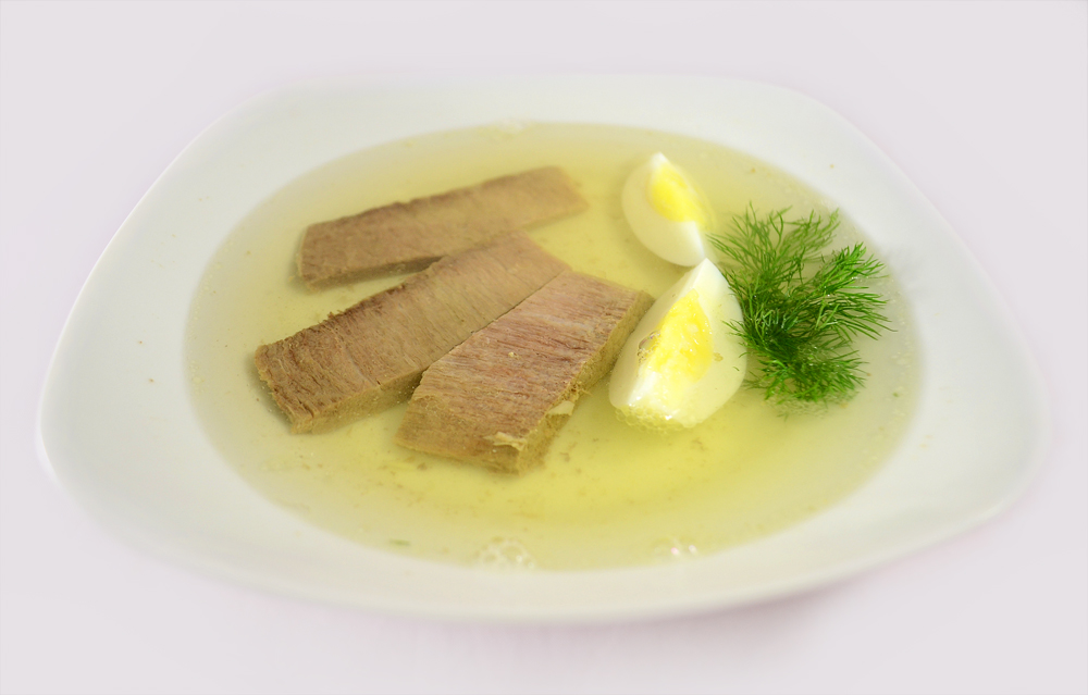Говяжий бульон, отварная говядина, яйцо курин. Энерг.ценность на 100 гр - 67 Ккал