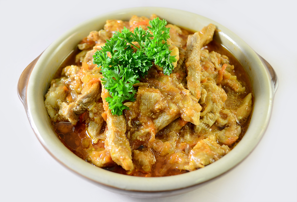 Свиной карбонад, лук репка, томат.паста. Энерг.ценность на 100 гр - 198 Ккал