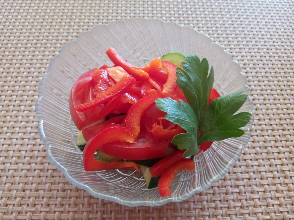 Салат из свежих помидоров, огурцов, заправляется растительным маслом