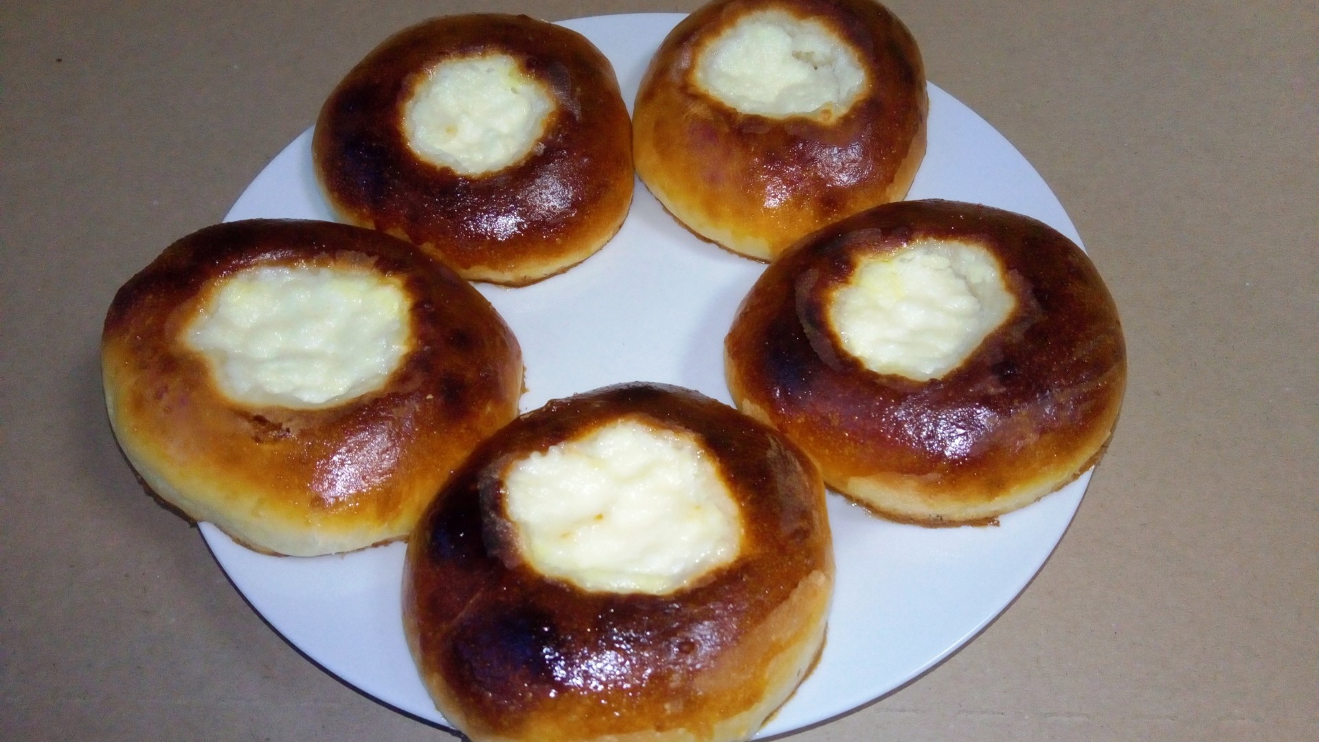 Сдобная духовая булочка с начинкой из творога с сахаром